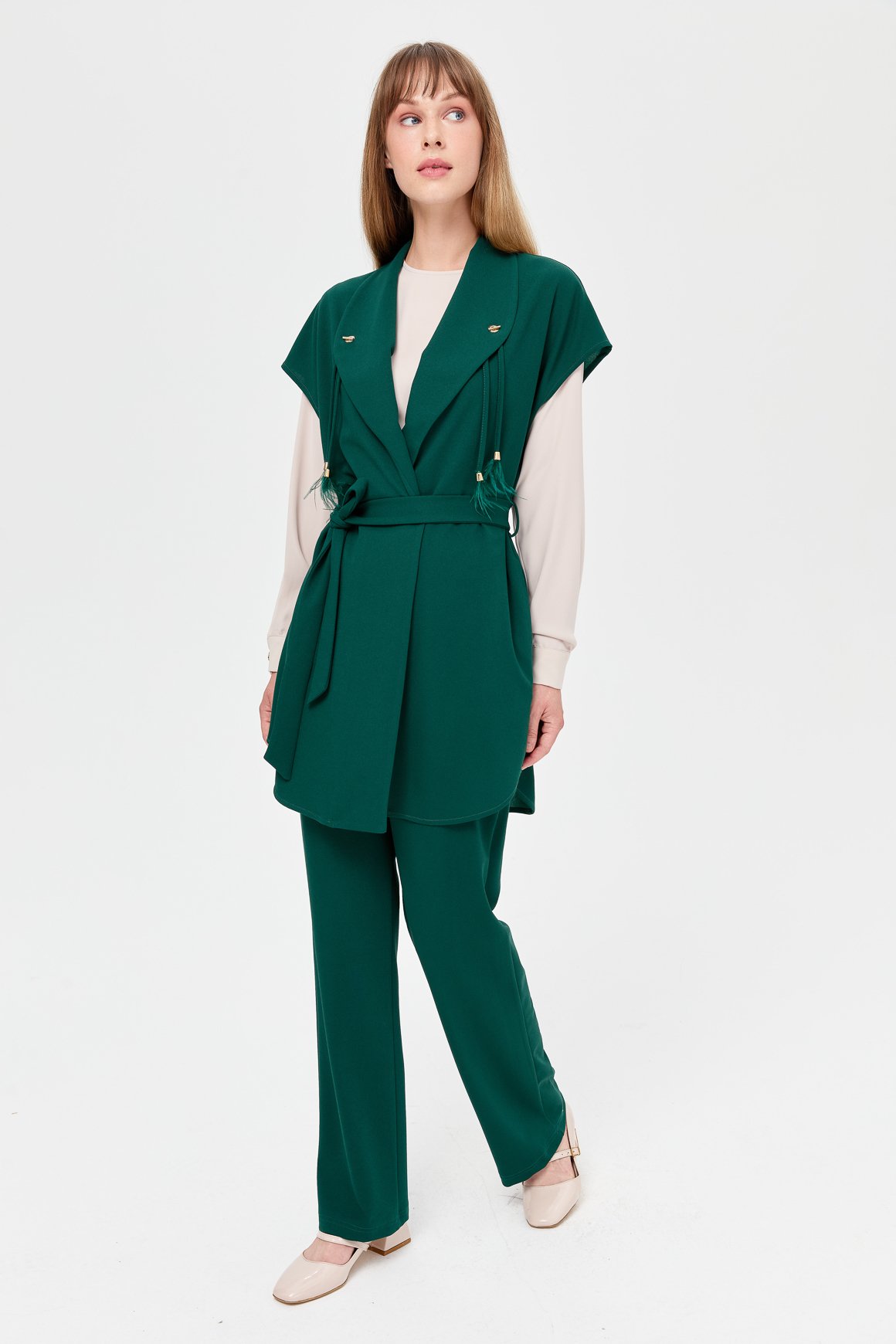 Biye Püskül Detaylı Krep Üçlü Takım Zümrüt (2527851997)