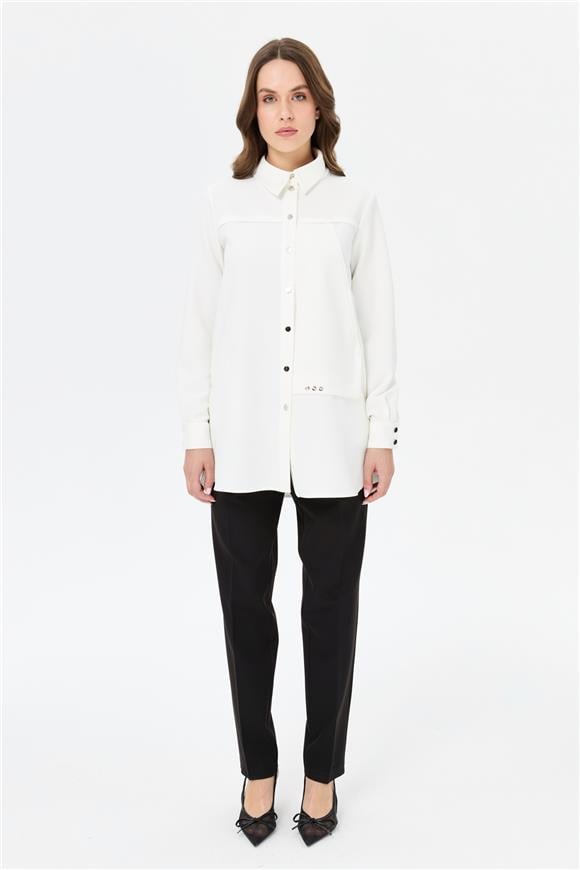Esnek Kumaş GiyÇık Tunik  Beyaz