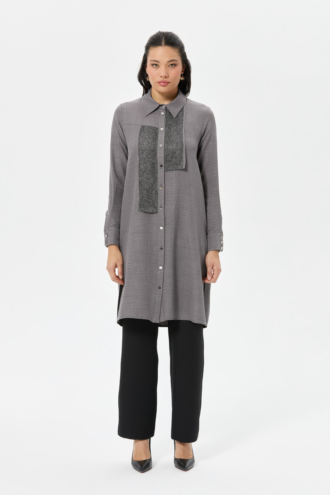 File Kombin Detaylı Düğmeli Tunik  Antrasit