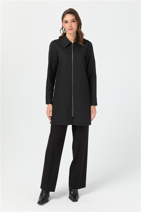 Kendinden Desenli Giy Çık Tunik Siyah (2624426200)