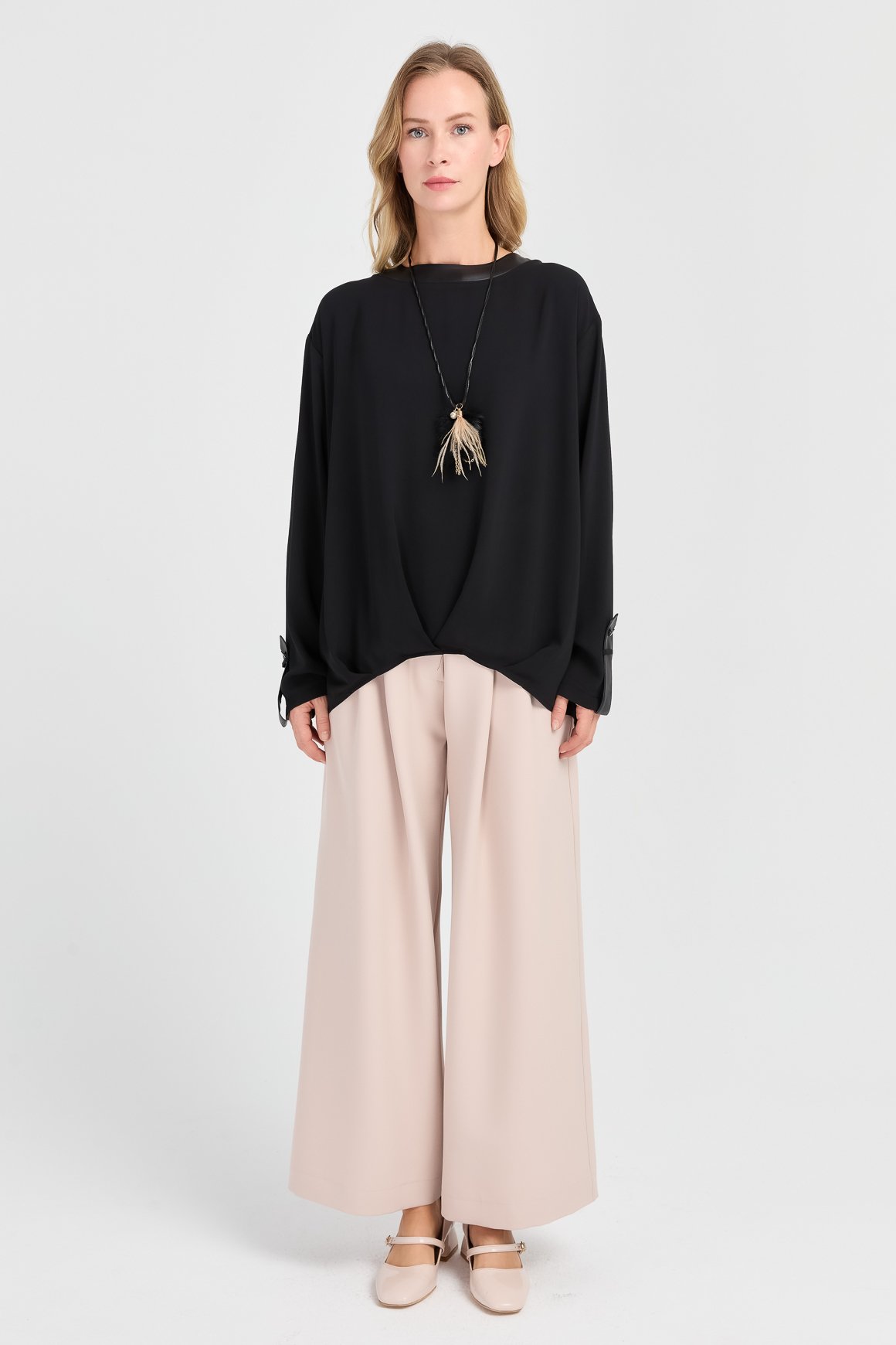 Yüksek Bel Çift Pile Pantolon Taş (2525711303)