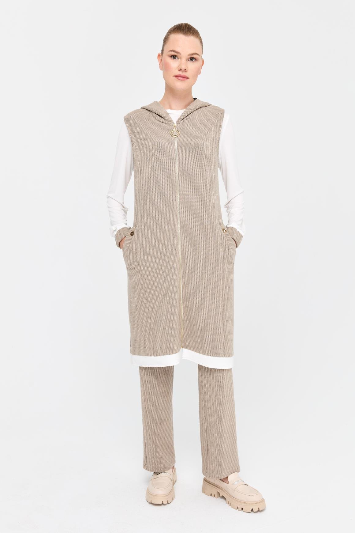 Pike Dokulu İç Dış Yelekli Takım Vizon (2527889704)