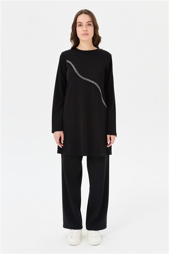 Taş Detaylı Rahat Kullanımlı Tunik  Siyah
