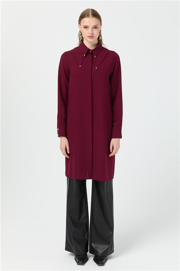 Çift Yakalı Uzun Tunik Bordo (2621557106)