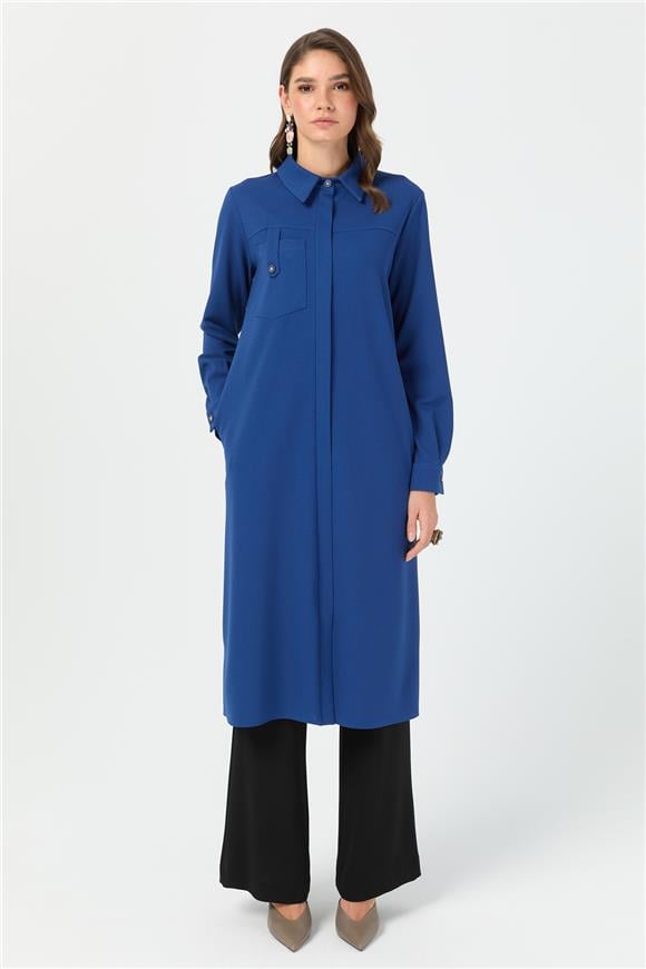 Cep Üzeri Apolet Detaylı Kurtarıcı Uzun Tunik İndigo (2621547804)