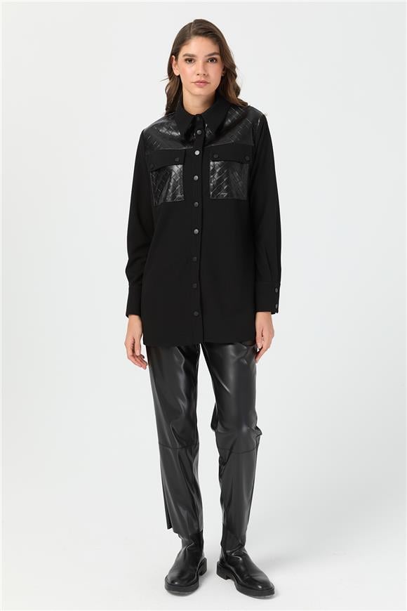 Örgü Desen Deri Garnili Tunik Siyah (2621553200)