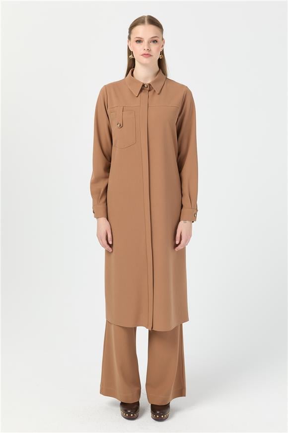 Cep Üzeri Apolet Detaylı Kurtarıcı Uzun Tunik Vizon (2621547704)